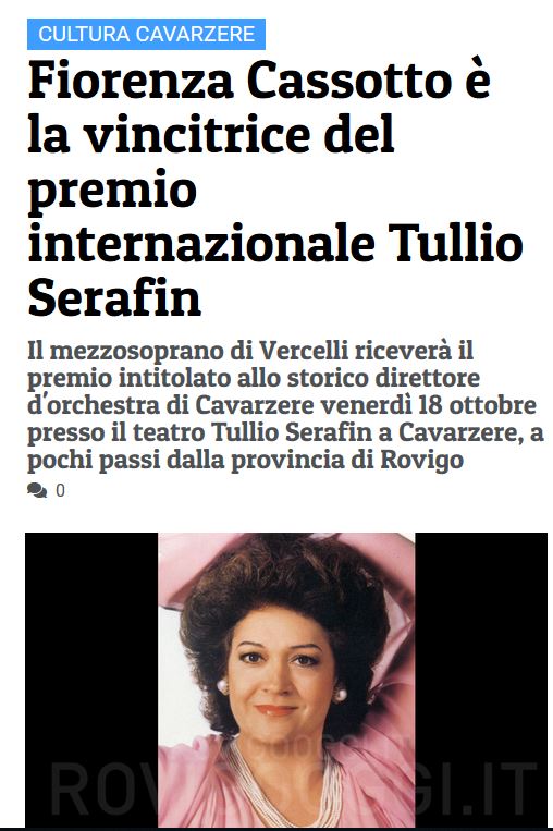 Leggi l’articolo su RovigoOggi.it… Navigazione articoli Nicla Sguotti presidente del Circolo Tullio Serafin – La Piazza – Agosto 2019 A Fiorenza Cossotto il Premio Internazionale Tullio Serafin 2019 – Musicandosite.it
