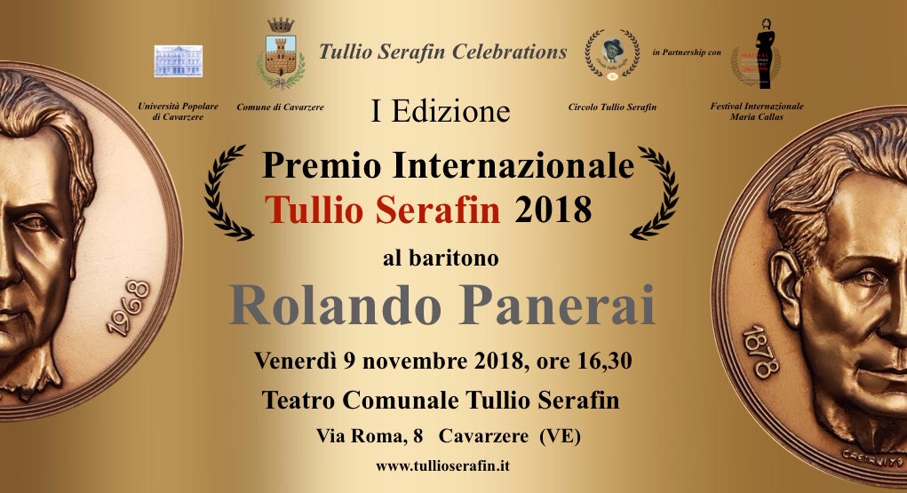 Si avvicina la cerimonia per il conferimento del Premio Internazionale Tullio Serafin a Rolando Panerai. Il celebre baritono sarà festeggiato a Cavarzere venerdì 9 novembre, presso il teatro Tullio Serafin, e ritirerà personalmente il prestigioso riconoscimento assegnatogli dalla Città di Cavarzere, in collaborazione con il Circolo Tullio Serafin e con la partnership del Festival Internazionale Maria Callas. Per Rolando Panerai, felicissimo di inaugurare la prima edizione del Premio Internazionale Tullio Serafin, il viaggio a Cavarzere sarà un ritorno nella terra natia del direttore veneto. Egli è infatti un illustre amico del Circolo Tullio Serafin del quale fu ospite lo scorso anno, in occasione del tradizionale concerto Omaggio a Tullio Serafin che l’associazione dedicata al Maestro promuove da quarant’anni.